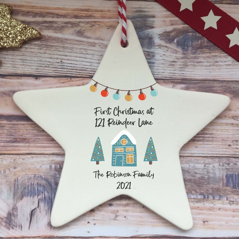 Ceramic Star Ornament Decoration Teal house first Christmas at address