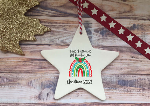 Ceramic Hanging Star Decoration Xmas rainbow - first xmas in new home