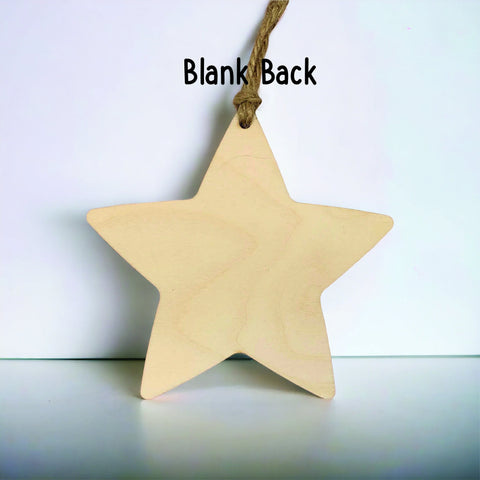 We will print the design shown in the first photo onto the front of the star. We can also print a personalised message on the back of the star for an additional charge.